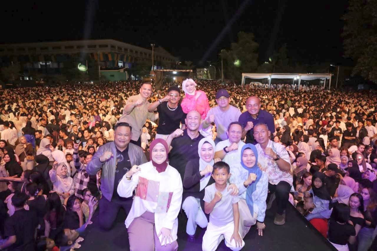 Lubuk Linggau, Glomadnews.com – Pesta rakyat dalam rangka puncak peringatan Hari Ulang Tahun (HUT) Ke-24 Kota Lubuklinggau dimeriahkan oleh artis ibukota yakni Diva Aurel Tabola Bale dan Faris Adam Stecu Stecu, Sabtu (18/10/2025) malam.