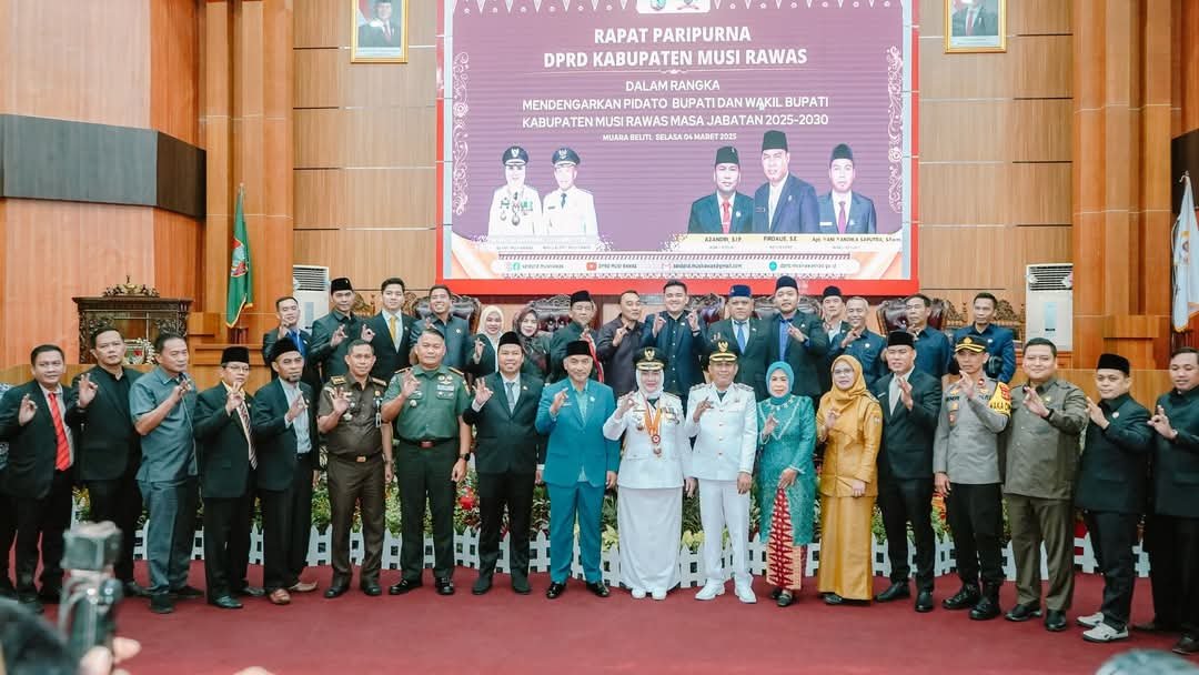 Dijelaskannya ini suatu amanah yang sangat besar telah diberikan kepada kami, amanah untuk memimpin Kabupaten Musi Rawas 2025-2030. Suatu amanah yang akan kami laksanakan dan akan kami pertanggungjawabkan baik didunia maupun akhirat.