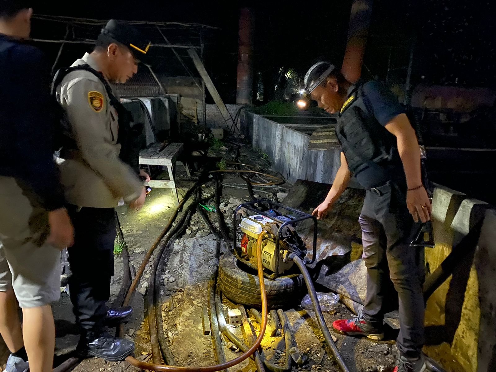 Tangki tempat penyulingan minyak di lokasi tersebut kemudian dipasang garis polisi (Police line) sebagai tanda bahwa kegiatan ilegal telah dihentikan.