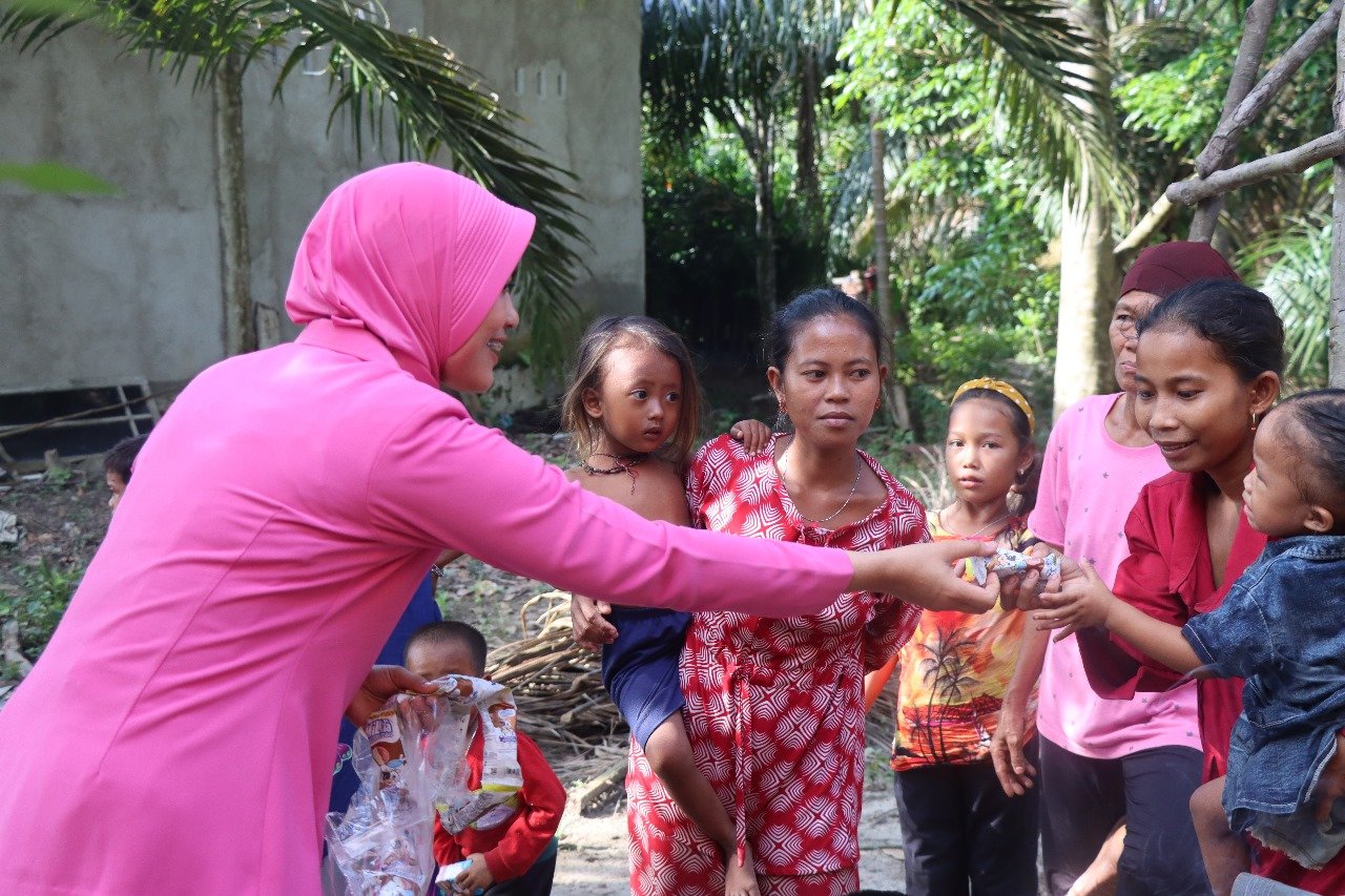 Bakti sosial ke SAD, Kecamatan Karang Dapo, Kabupaten Muratara, dipimpin langsung oleh Ketua Bhayangkari Cabang Polres Muratara, Ny Lesha Koko Arianto Wardani, Senin (10/6/2024) sekitar pukul 14.00 wib.