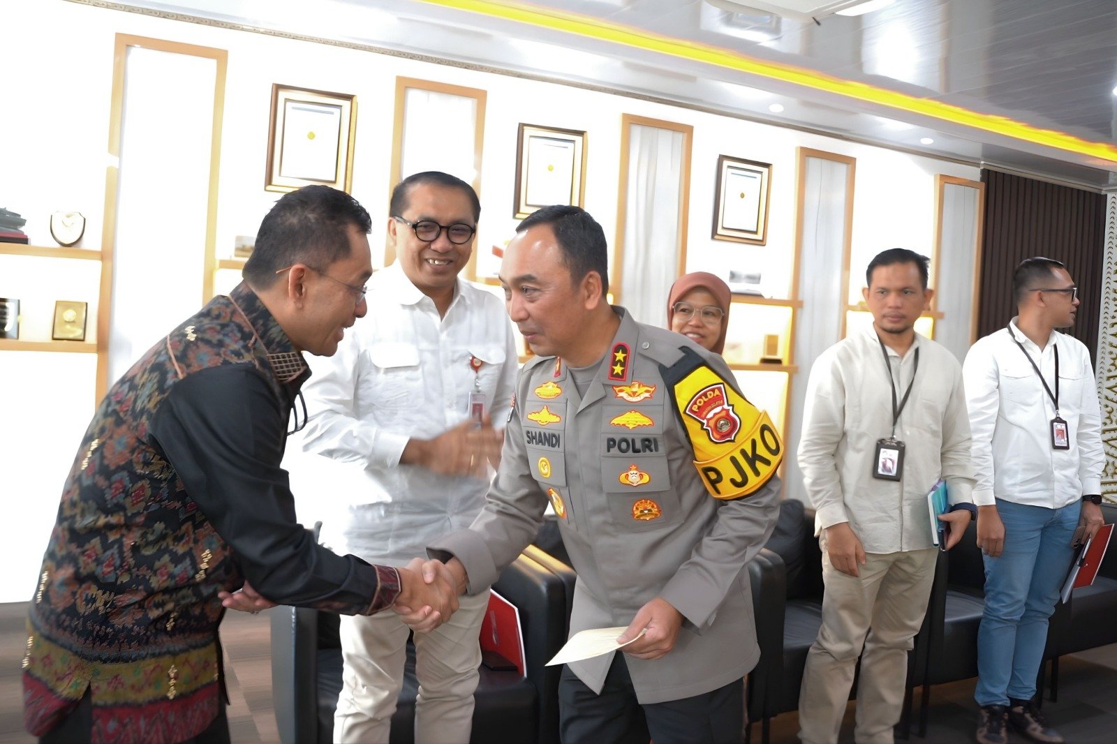 Kapolda Sumsel Irjen Pol Dr. Sandi Nugroho, S.I.K., S.H., M.Hum. menerima langsung audiensi Kepala OJK Provinsi Sumatera Selatan Arifin Susanto beserta jajaran di Mapolda Sumsel, Palembang, Jumat (27/02/2026).