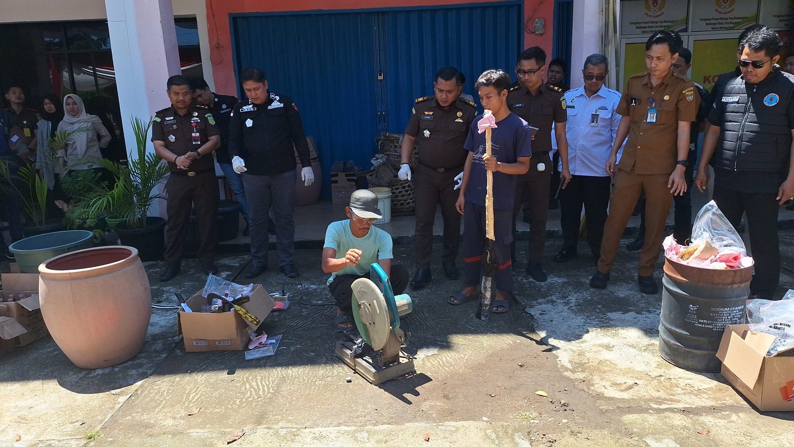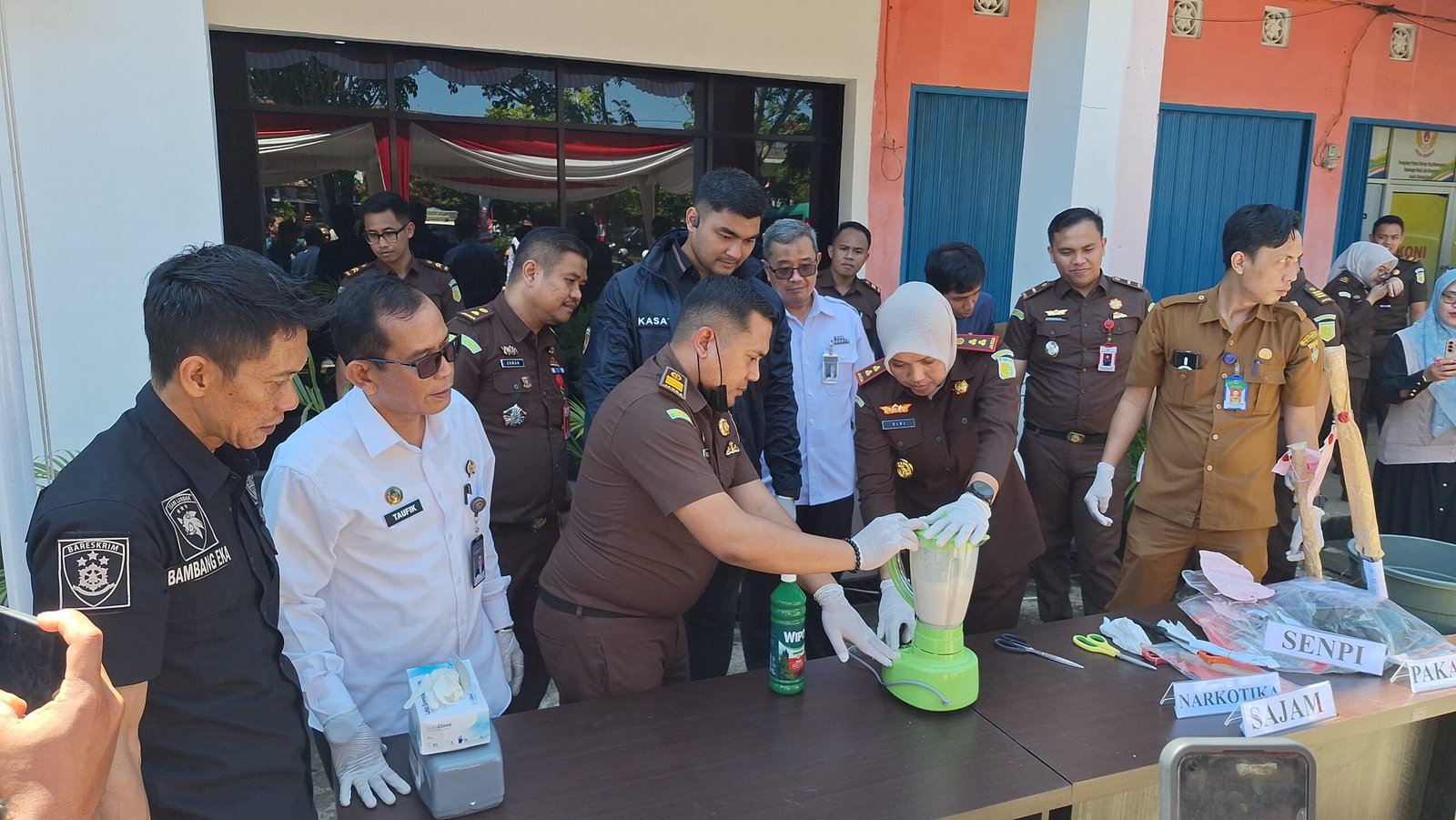 Pemusnaan berlangsung di halaman Kantor Kejari Mura, di Jalan Pangeran Mohammad Amin, Muara Beliti Baru, Kecamatan Muara Beliti, Kabupaten Musirawas, Kompleks Ruko Agropolitan Centre Provinsi Sumatera Selatan, (Sumsel). Selasa (26/8/2025).
