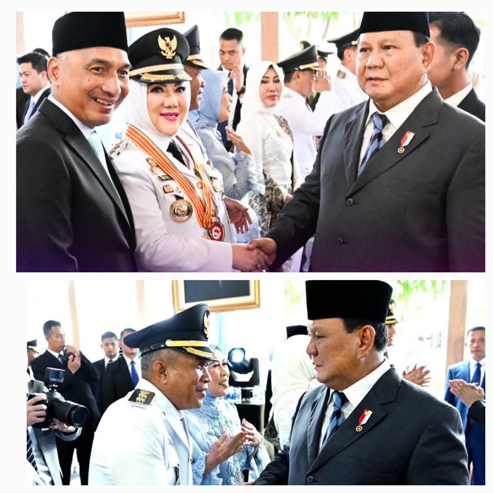 Jakarta, GLOMADNEWS.COM – Hj Ratna Machmud berpasangan dengan H Suprayitno hari ini resmi dilantik sebagai Bupati dan Wakil Bupati Kabupaten Musi Rawa masa bakti 2025 – 2030 oleh Presiden Republik Indonesia, Prabowo Subianto didampingi Wakil Presiden, Gibran Raka Buming Raka, Pelantikan berlangsung di Istana Negara, Jakarta, pada Kamis (20/2/2025), secara serentak dengan kepala 961 kepala daerah terpilih daerah lainnya hasil Pilkada 2024.